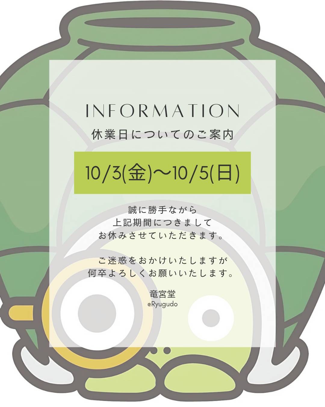 令和7年9月竜宮堂&竜宮の酒 営業日です🐢10月の竜宮オークションは10月26日(日曜日)開催です。